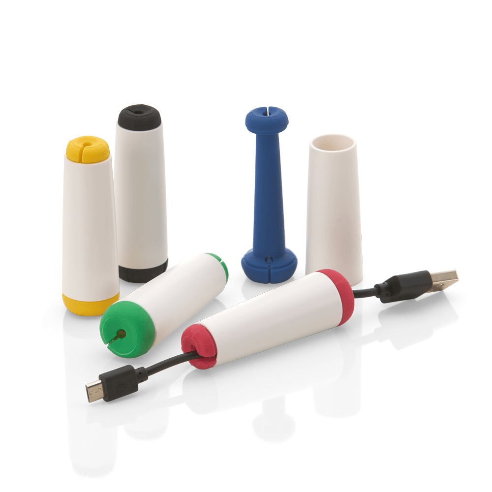Organizador de cabos, Carretel interno para manter cabos enrolados corretamente, economizando espaço, Composição: Silicone + ABS plastic (ABS na parte branca)